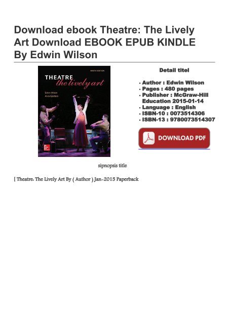 The Lively Art 10e Wilson Chapter 2 The Audience. Web TheatreThe Lively Art 9th Edition PDF is a book that discusses the. Sell buy or rent textbooks eBooks on BooksRun.